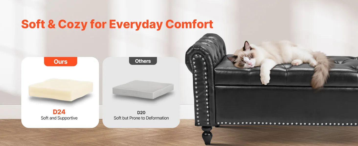 Seduta confortevole: il cuscino spesso 50 mm è imbottito con schiuma D24 per un equilibrio tra morbidezza e supporto. Ideale per rilassarsi, indossare le scarpe o prendersi una pausa, allevia la pressione su gambe e fianchi per un comfort quotidiano