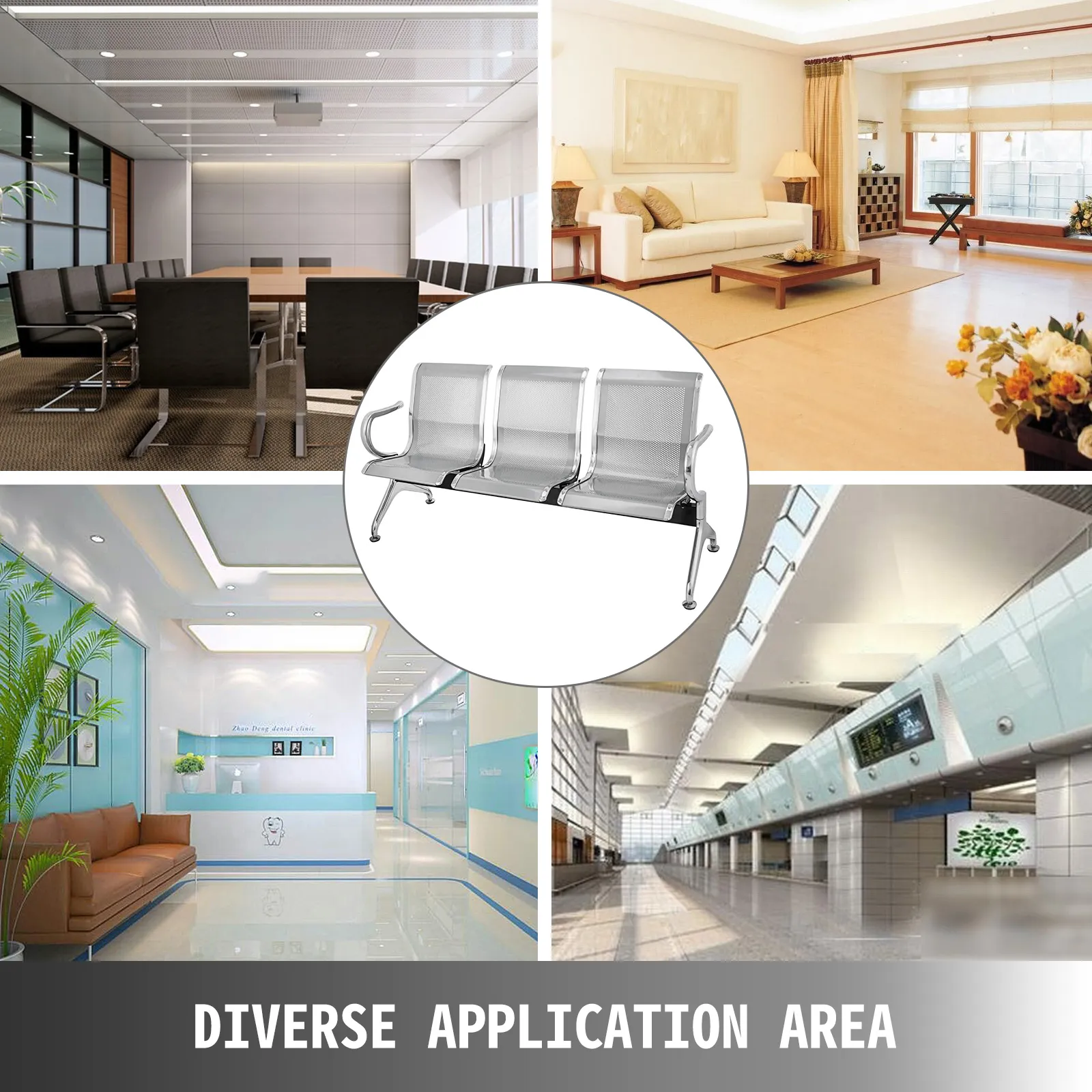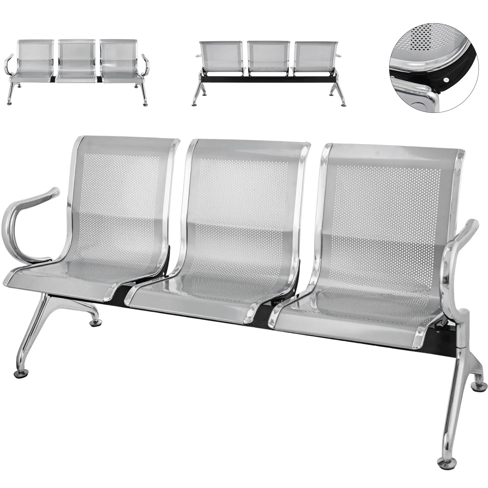 Il sedile della sala d'aspetto è realizzato in acciaio ad alta resistenza, resistente alla ruggine, resistente e liscio. C'è abbastanza spazio per ospitare tre adulti. Le sedie nella sala d'aspetto del salone sono facili da pulire e dotate di comodi braccioli a doppia faccia, che forniscono posti di riposo per gli ospiti in attesa in aeroporto, banca, salone, ospedale e ufficio.