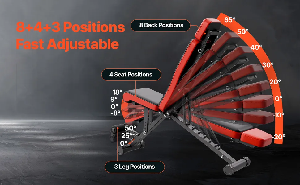 Regolabile e multiuso: la panca regolabile per l'allenamento della forza è progettata con 8 posizioni per lo schienale, 4 posizioni per il sedile e 3 posizioni per il poggiapiedi. Basta tirare i bulloni a sgancio rapido per regolare la posizione più adatta a te e si bloccherà automaticamente in posizione