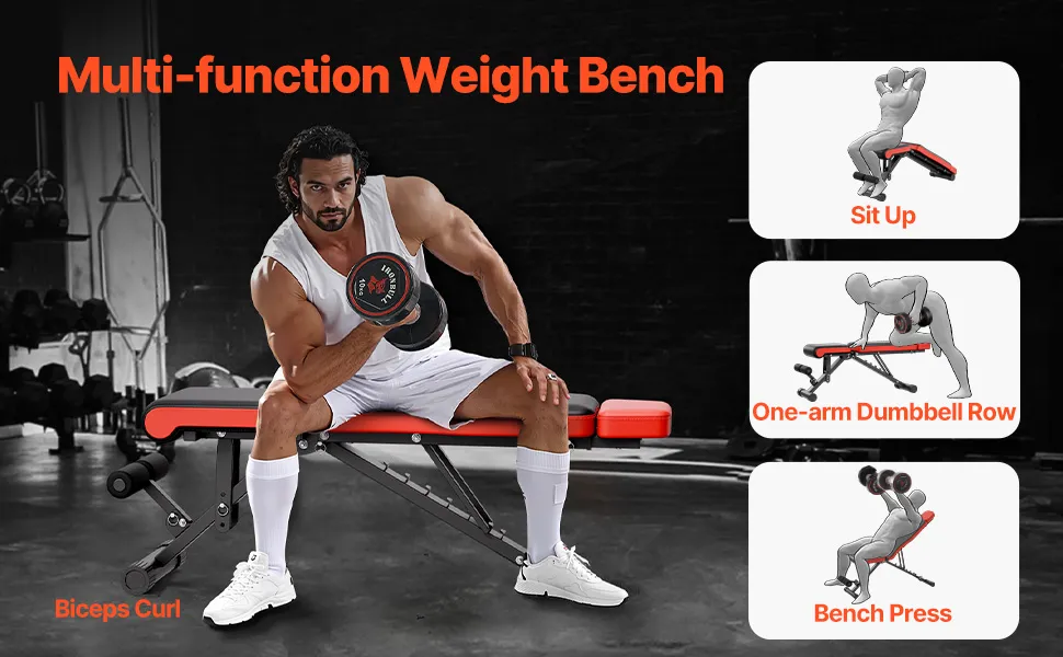 VEVOR Panca pesi Stabile e Resistente per Allenamento Completo del Corpo, Panca Regolabile per Esercizi, Sit Up per Allenamento della Forza con Protezione Estesa per Testa Collo 300 kg