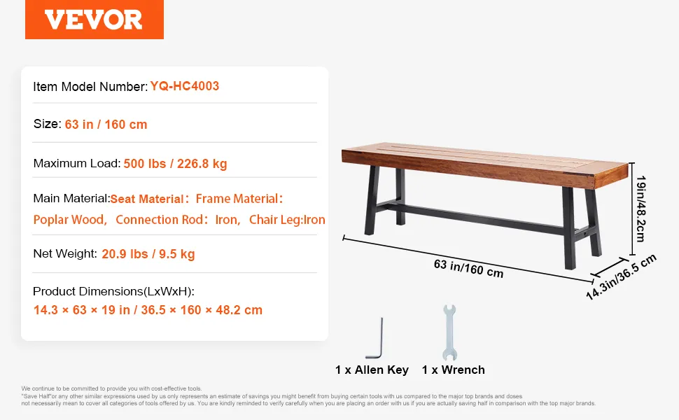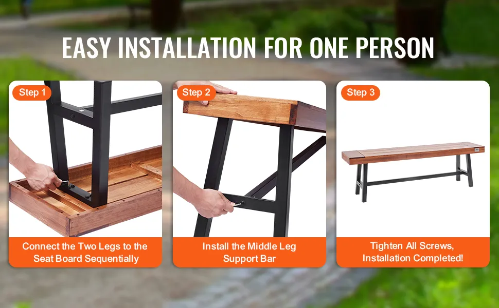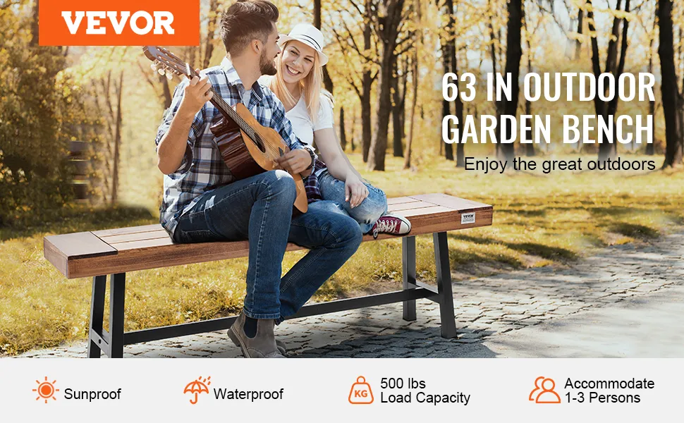 La nostra panca da esterno VEVOR è realizzata meticolosamente in legno massello di alta qualità e gambe in metallo. Ciò la rende una scelta valida per gli spazi esterni. Può resistere a diverse condizioni atmosferiche senza compromettere la sua integrità. Puoi essere certo che la panca può sopravvivere a una varietà di condizioni ambientali, resistendo alla corrosione, alla deformazione e ai danni e può supportare comodamente fino a 500 libbre/227 kg, rendendola adatta a utenti di diverse dimensioni. La durevolezza e la resistenza della panca sono perfette per un uso esterno a lungo termine, valorizzando il tuo giardino, parco, patio o portico per gli anni a venire.