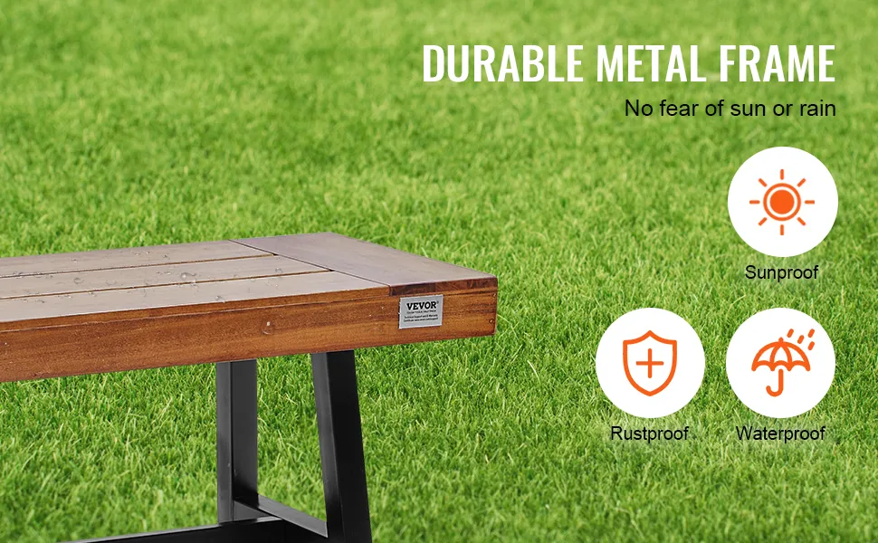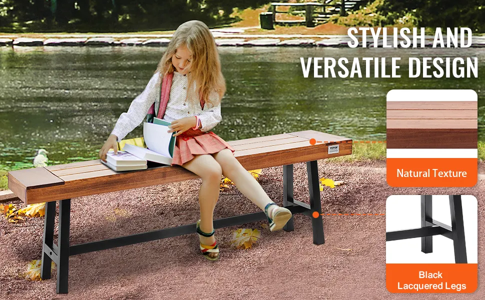 La nostra panca da pranzo per patio VEVOR ha una venatura naturale del legno. Aggiunge la bellezza della natura alla tua casa, mentre le gambe verniciate di nero forniscono un tocco di stile. Questa perfetta combinazione di estetica del design significa che la nostra panca si adatta perfettamente a stili di arredamento moderni, nordici, industriali e vari. Arricchendo il tuo spazio esterno con fascino e gusto unici, la nostra panca diventa il punto focale del tuo giardino, parco o patio.