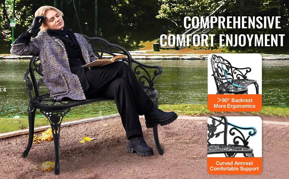 La parte migliore della nostra panca da giardino in metallo VEVOR è la sua attenzione alla praticità. La panca da patio vanta un angolo dello schienale superiore a 90° per il relax e presenta braccioli curvi per sostenere le braccia. Queste caratteristiche ergonomiche ti aiutano a rilassarti durante il tuo tempo libero. La rendono perfetta per leggere o gustare un caffè tiepido. Lo schienale e i braccioli curvi ti assicurano di poterti sedere e rilassare, godendoti la pace della vita intorno a te senza alcun disagio.
