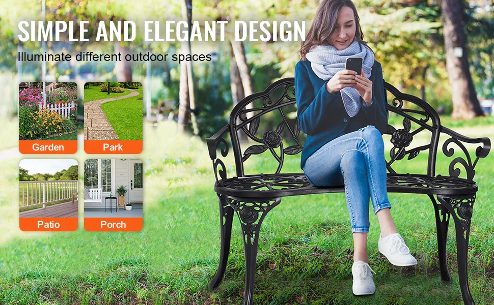 La panca da esterno VEVOR ha uno squisito motivo floreale. Aggiunge un tocco di eleganza a qualsiasi giardino o area esterna. Questa scelta di design non solo esalta l'attrattiva visiva di questa panca, ma la rende anche un perfetto pezzo decorativo. Il suo design estetico si fonde perfettamente con vari stili di giardino, offrendo sia comfort che bellezza al tuo ambiente esterno.