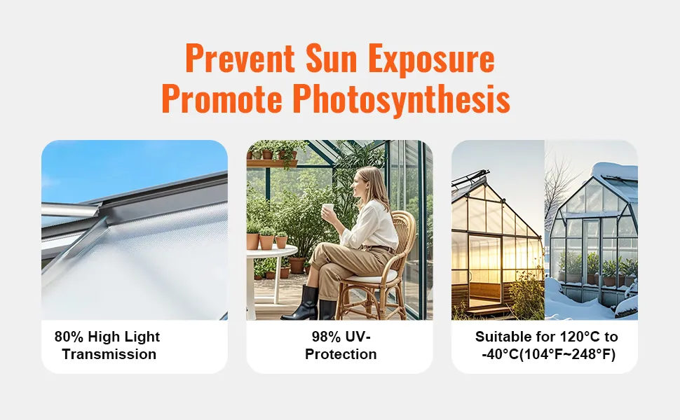 Ampia copertura: ogni set include 24 pannelli, che coprono fino a 17,7 m², rendendolo ideale per serre, garage e passerelle con quantità regolabili per qualsiasi spazio, garantendoti la flessibilità di personalizzare la copertura in base alle esigenze del tuo progetto.