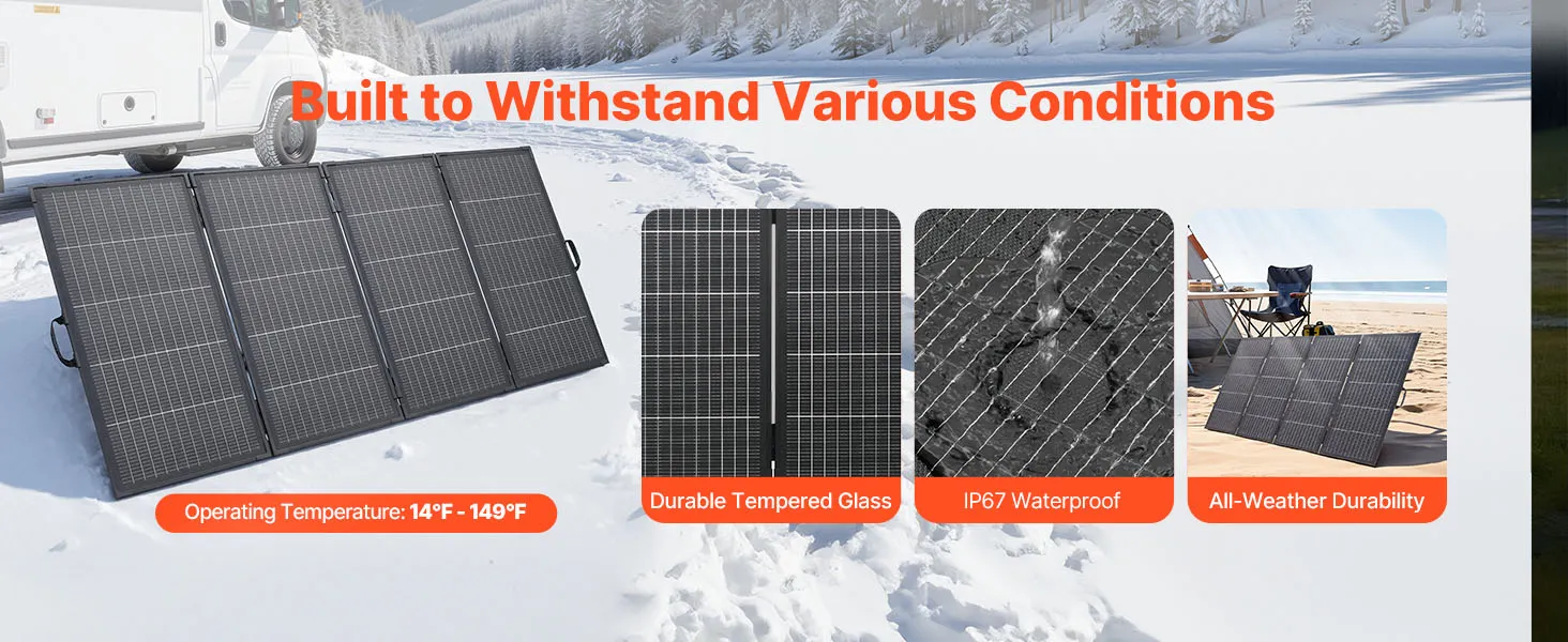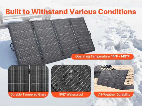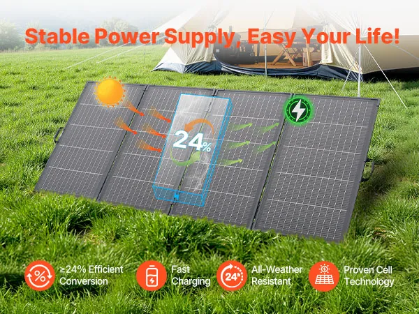 Efficienza superiore: dotato di celle solari monocristalline ad alta efficienza di tipo N da 16 BB, questo pannello solare pieghevole da 400 W cattura più luce solare e genera più energia utilizzabile per una ricarica più rapida del dispositivo