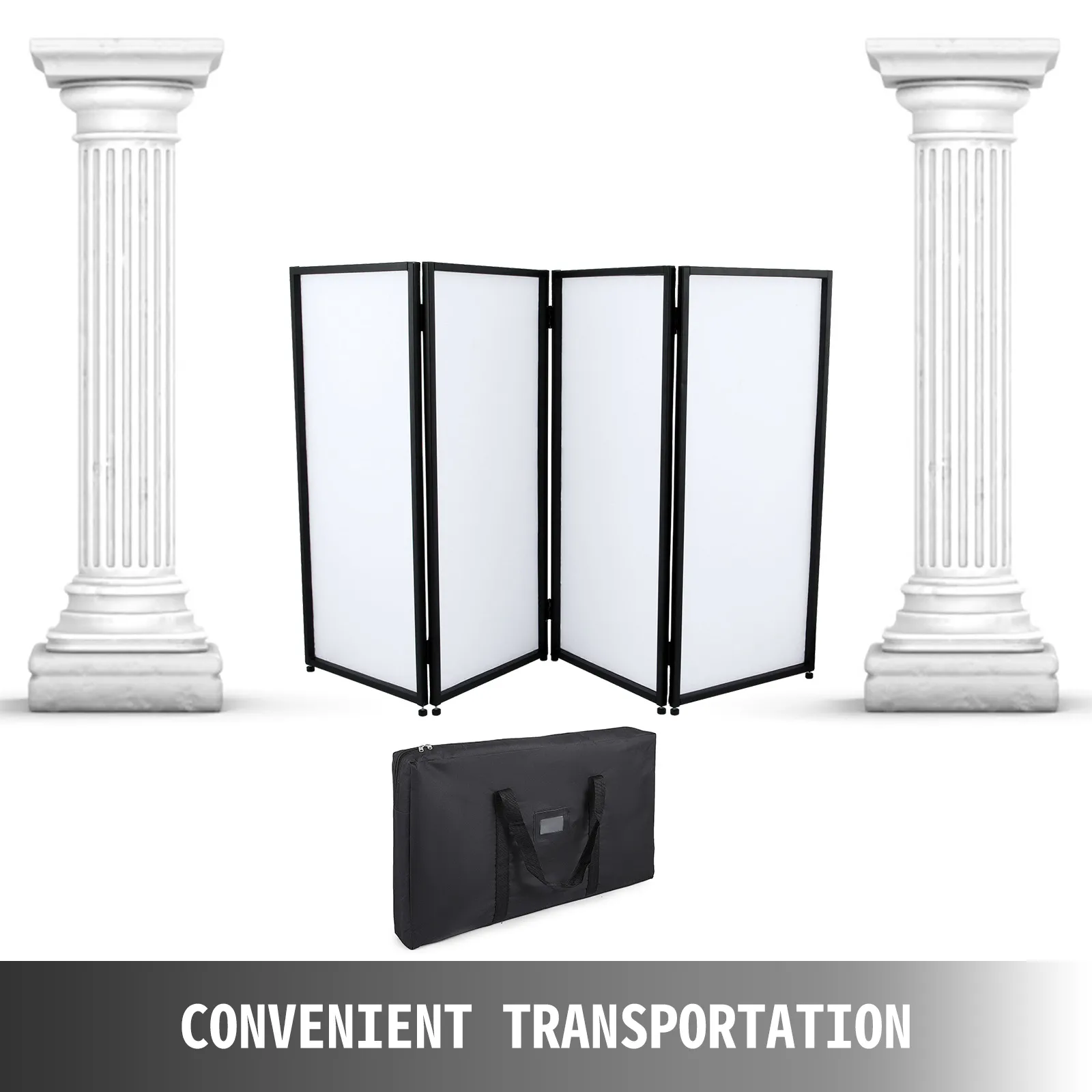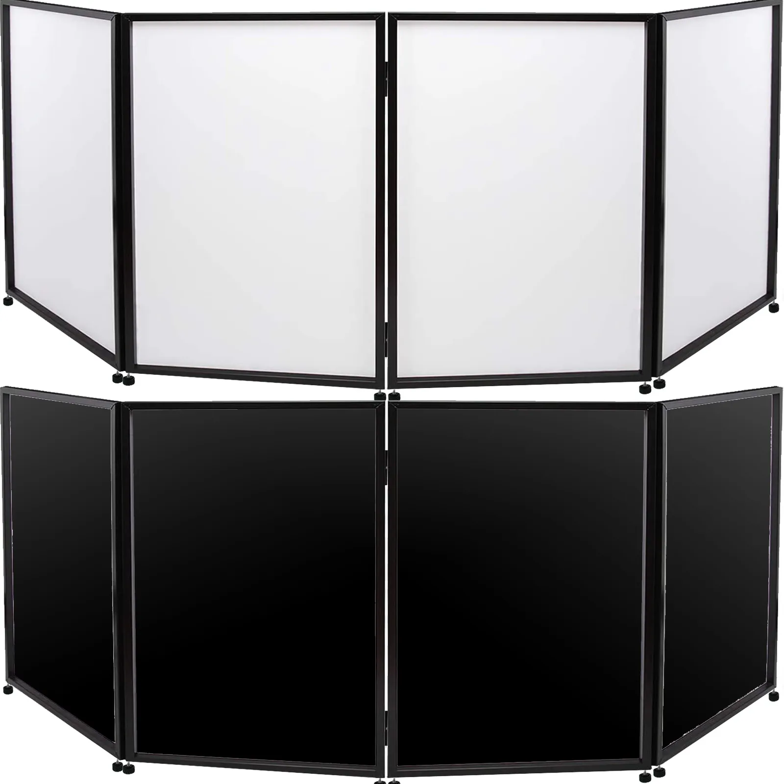 Il tabellone pieghevole ha una serie di pannelli neri e una serie di pannelli bianchi. Ogni set include 4 pannelli, che possono soddisfare in misura maggiore le tue esigenze di spazio privato. Inoltre, il tabellone della mostra applica il solido telaio in lega di alluminio e poliestere, che è leggero e resistente. Può anche essere organizzato in diverse forme per soddisfare le tue esigenze specifiche.