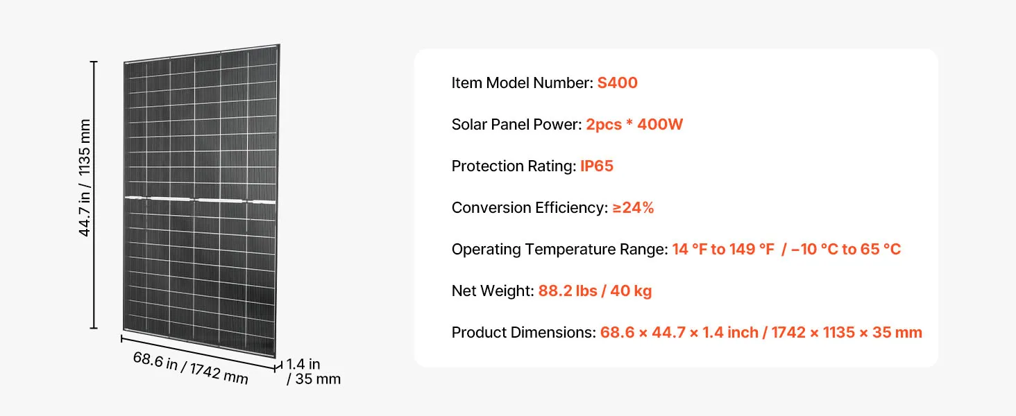 Pannello solare bifacciale aggiornato: dotato di un design bifacciale e celle monocristalline di tipo N da 16BB, questo pannello solare da 2 pezzi da 400 W cattura la luce solare diretta sulla parte anteriore e la luce riflessa (albedo) sulla parte posteriore