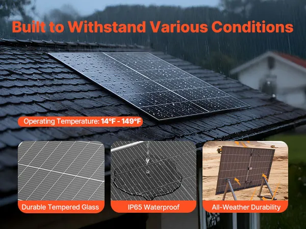 Dotato di un grado di protezione IP65 e di una struttura robusta, questo pannello solare funziona in modo affidabile da -10 °C a 65 °C, garantendo prestazioni stabili e durature in vari ambienti esterni.