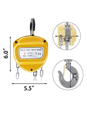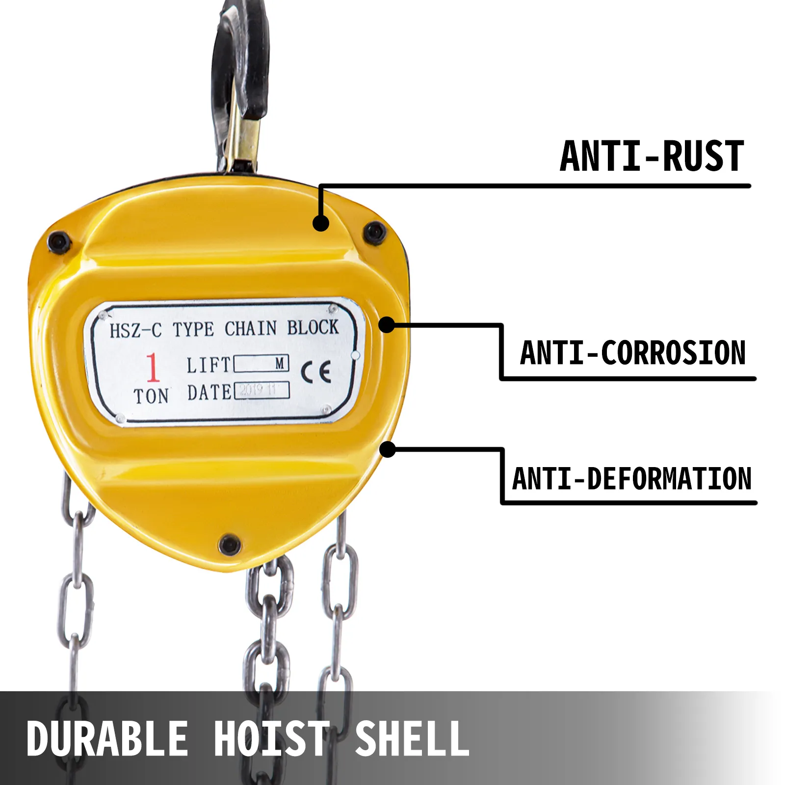 Blocco Catena per Paranco Manuale da 2200lbs / 1ton Giallo