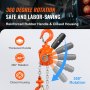 Reliable braking system: The Weston-style double-pawl brake design distributes the load across opposite sides of the gears to improve load safety. The industrial-grade alloy steel hook rotates 360° for easy lifting.