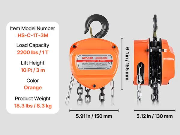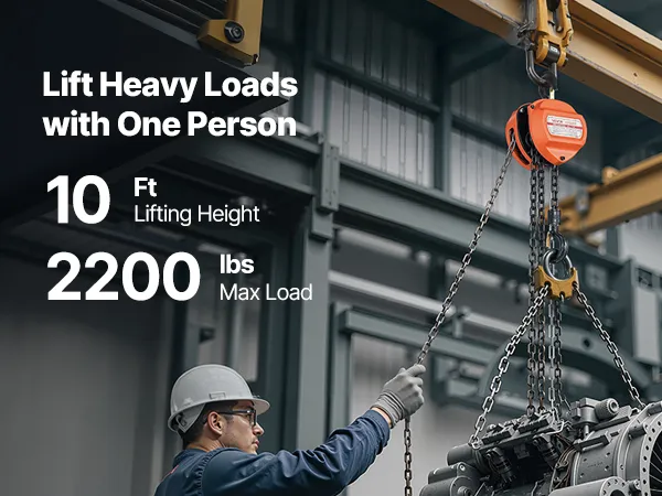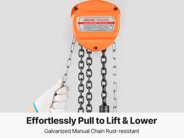 Capacità di sollevamento di 2200 libbre (999 kg): questo paranco a catena manuale gestisce facilmente carichi pesanti, supportando fino a 2200 libbre (1 T) e raggiungendo altezze fino a 10 piedi (3 m). Ideale per garage, cantieri edili