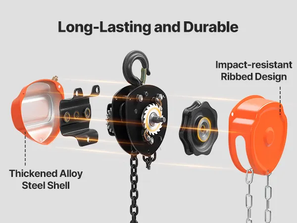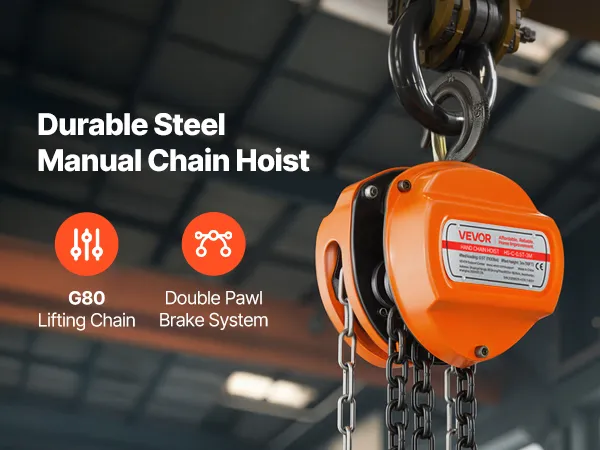 Struttura in acciaio resistente: realizzata in lega di acciaio, questa catena manuale è progettata per durare. L'involucro rinforzato e la catena trattata termicamente G80 garantiscono una durata superiore, resistenza alla corrosione