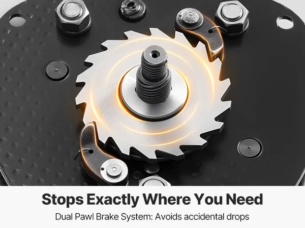 Sollevamento preciso e freno di sicurezza: il sistema frenante a doppio cricchetto garantisce un sollevamento sicuro e preciso. Il nostro paranco a catena mantiene il carico stabile all'altezza desiderata, evitando cadute accidentali