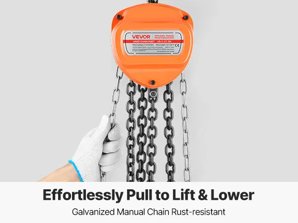 Struttura in acciaio resistente: realizzata in lega di acciaio, questa catena manuale è progettata per durare. L'involucro rinforzato e la catena trattata termicamente G80 garantiscono una durata superiore, resistenza alla corrosione