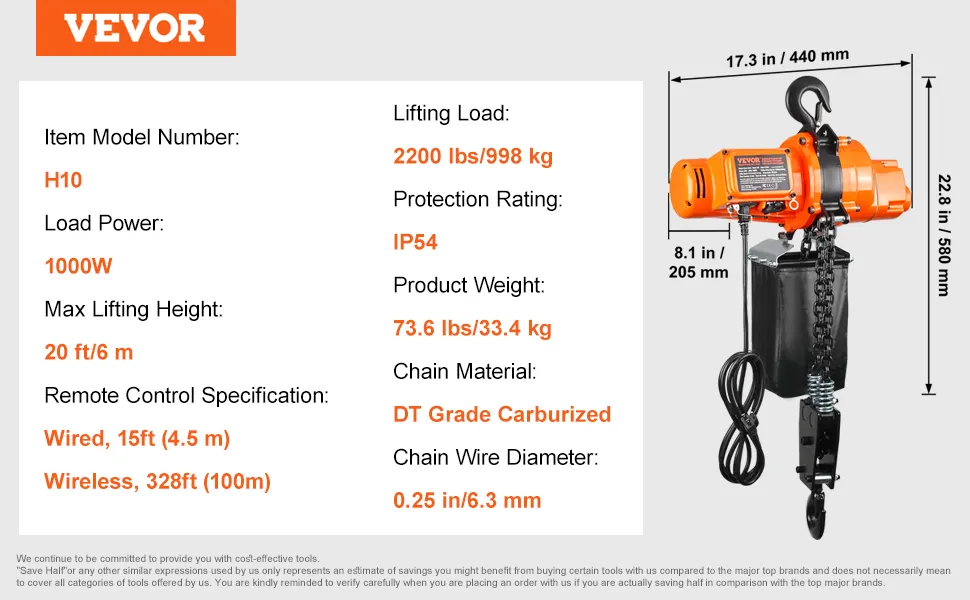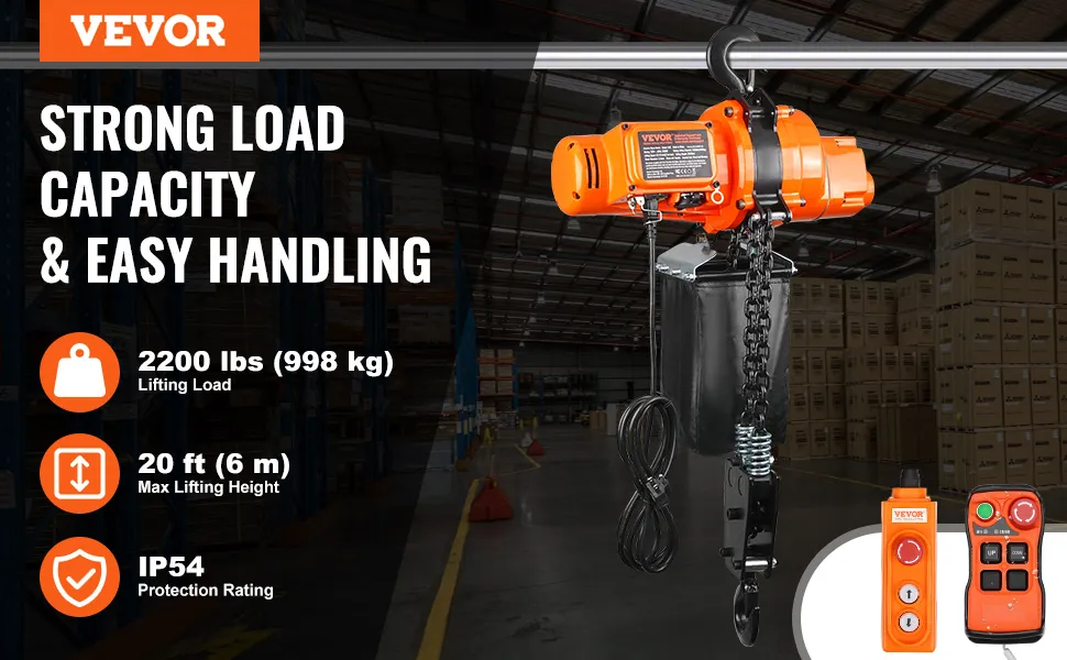 Capacità di sollevamento di 2200 libbre / 998 kg: benvenuta capacità di sollevamento di 2200 libbre / 998 kg! Il nostro paranco elettrico a catena è dotato di una catena in carbonio DT di alta qualità per durata e resistenza.