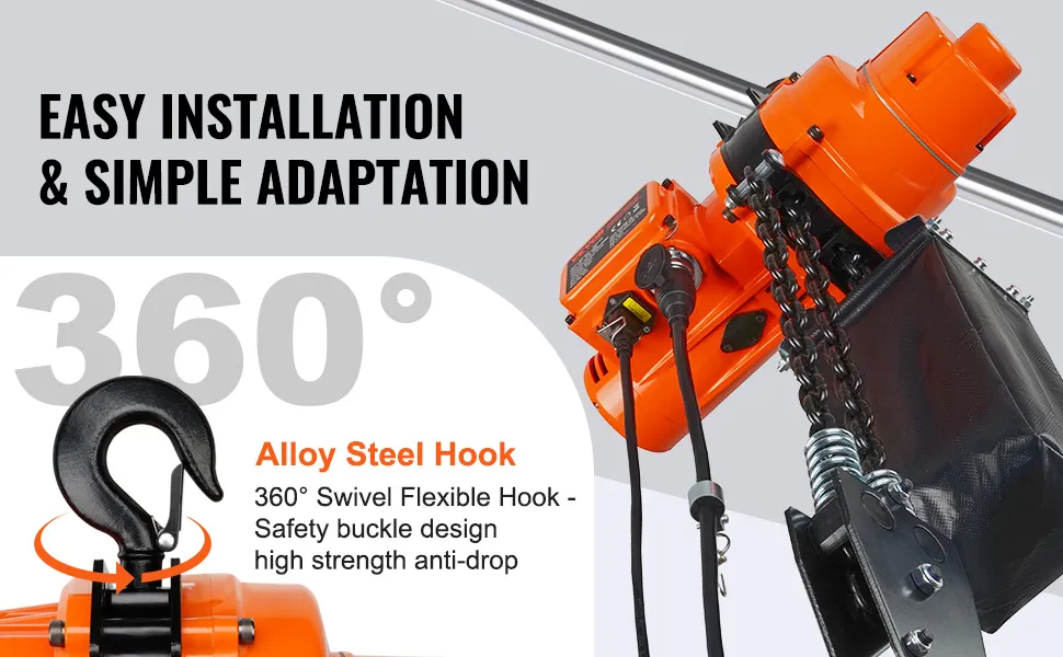 Dì addio ai problemi! Il nostro paranco elettrico a catena è dotato di un'imbracatura e di un telecomando altamente reattivo che consente di sollevare e abbassare con facilità.