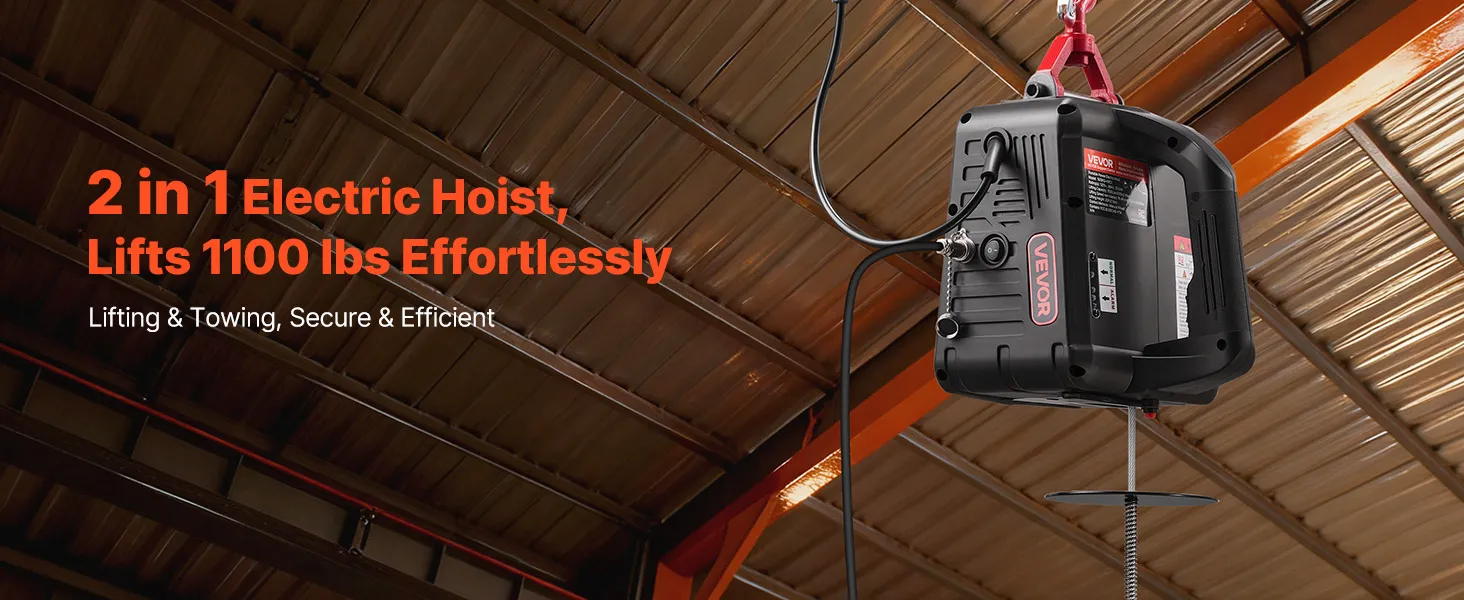 Potente capacità di sollevamento: questo argano elettrico portatile gestisce fino a 1.100 libbre, solleva a 16,4 piedi/min (senza carico) e raggiunge i 25 piedi. Ti aiuta a sollevare motori, acciaio o mobili in garage, magazzini o balconi