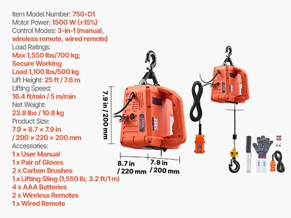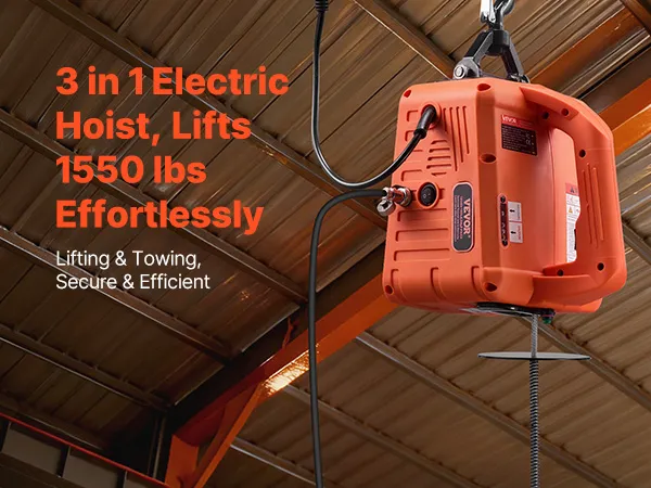 Controllo facile 3 in 1: questo paranco elettrico potente gestisce sollevamenti verticali e tiri orizzontali in un'unica unità. I pulsanti della maniglia rispondono rapidamente, il telecomando cablato da 7,2 m offre un controllo preciso