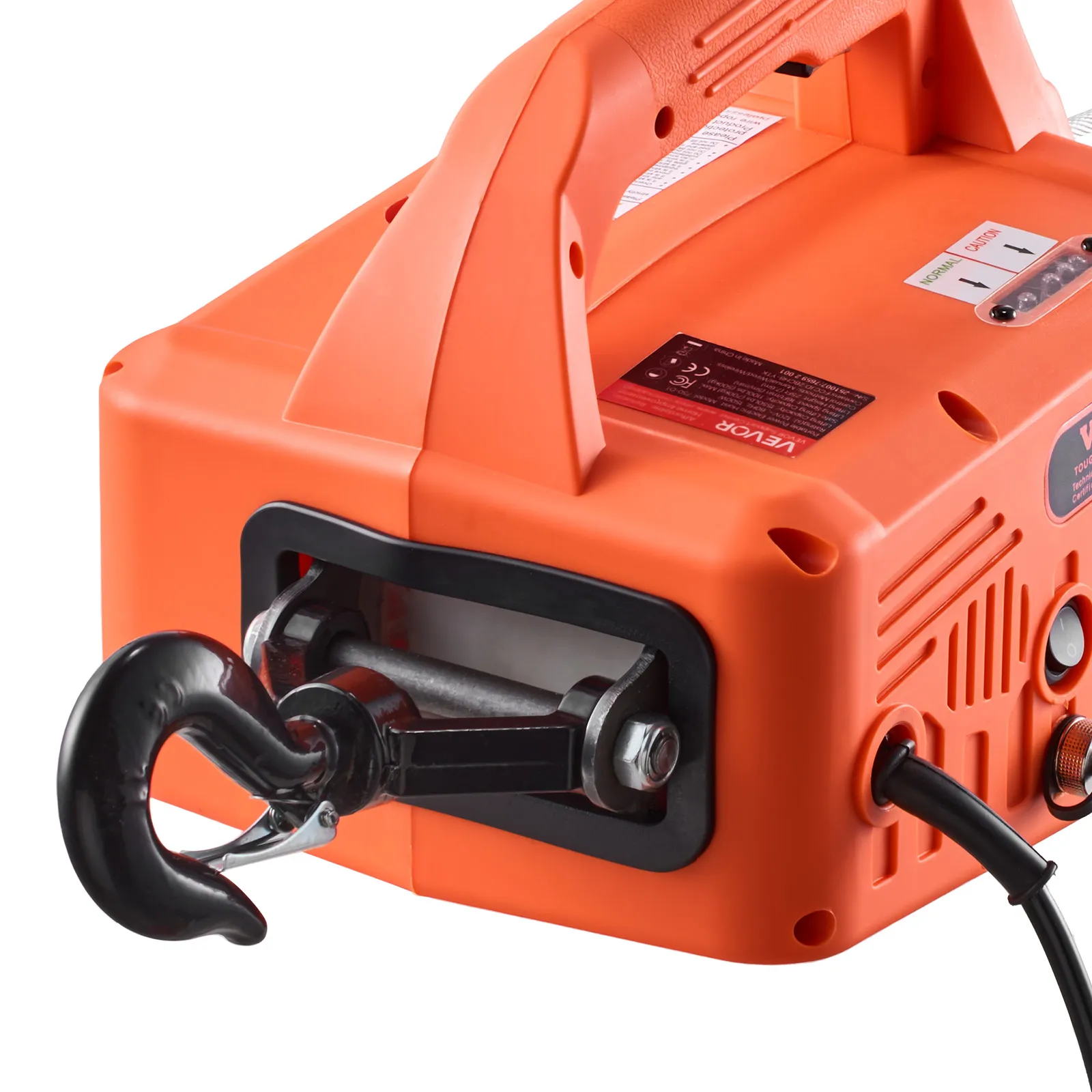 VEVOR Verricello Elettrico di Sollevamento Capacità Carico 700 kg, Paranco Portatile con Argano Elettrico da 1500 W, Altezza di Sollevamento 7,6 m 5 m/min con Telecomando Manuale