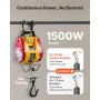 Motore durevole e affidabile: questa gru elettrica con argano utilizza un motore da 1500 W con raffreddamento a ventola forzata e spazzole di carbone più grandi. Il design aiuta a fornire una potenza costante