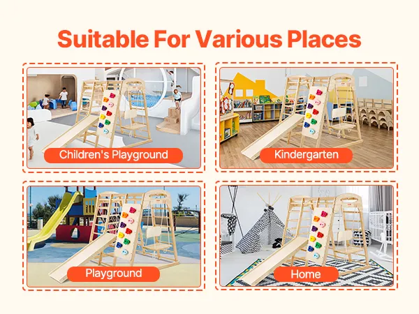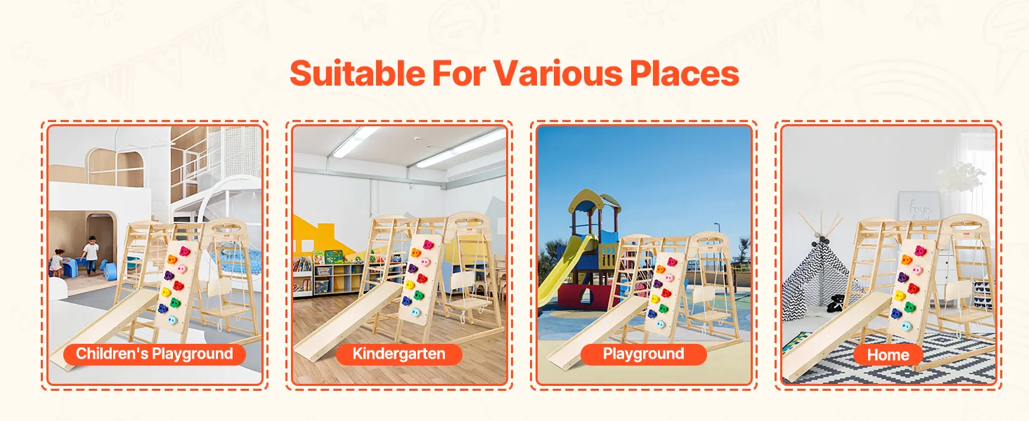 Ideale per qualsiasi spazio gioco: dalle case alle scuole, dalle sale giochi ai cortili, questa palestra di arrampicata indoor si adatta a qualsiasi ambiente. Facile da installare e adattare, trasforma qualsiasi spazio in un parco giochi attivo