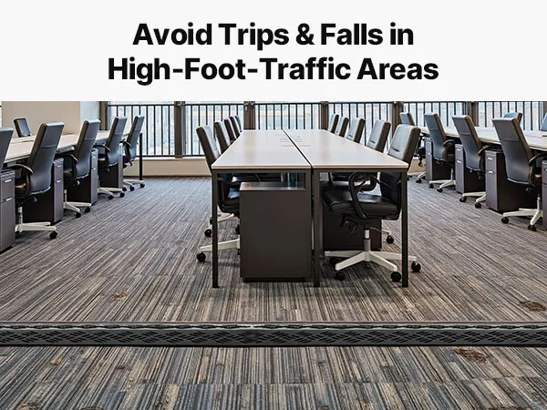 La nostra copertura per cavi da pavimento offre ampio spazio per proteggere cavi di alimentazione, cavi dati, tubi flessibili e altro ancora.