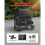 VEVOR Passeggino a Quattro Posti per 4 Bambini, Pieghevole con Maniglia Regolabile, Imbracatura di Sicurezza Tettuccio Rimovibile, Passeggino Bambini Comodo Resistente, Nero, Carico 150 kg
