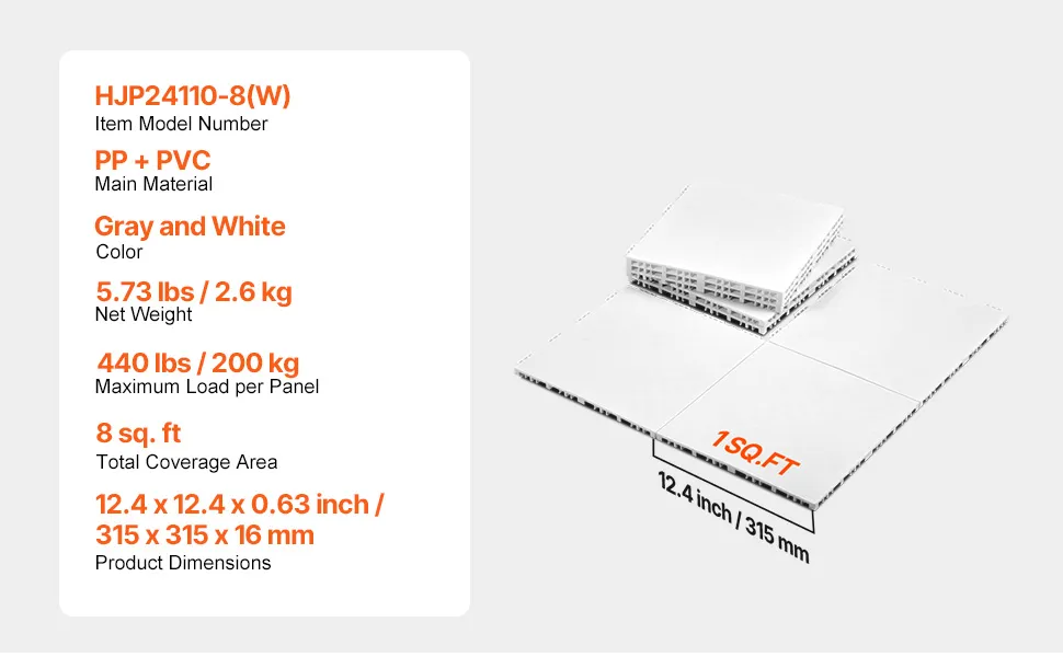 VEVOR Tappetini da Hockey ad Incastro 315 x 315 x 16 mm Tappetini da Palestra, 8 Pezzi, Piastrelle per Pista da Ballo per Superficie di Allenamento Versatile ad Incastro, Grigio Bianco 0,74 m²/Scatola