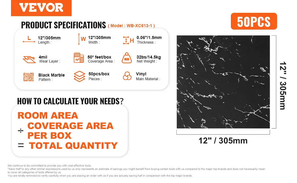 Le piastrelle autoadesive in vinile VEVOR presentano una speciale texture in marmo nero. Questa texture aggiunge eleganza a qualsiasi stanza. La dimensione 12x12 pollici è perfetta per vari spazi. Queste piastrelle imitano l'aspetto del vero marmo, conferendo alla tua casa un aspetto di lusso. Ogni piastrella è progettata con precisione, garantendo un aspetto uniforme una volta installata. Il motivo in marmo nero è versatile e si adatta a diversi stili di arredamento. Che tu le installi in cucina, sala da pranzo o camera da letto, queste piastrelle eleveranno l'aspetto generale del tuo spazio. La loro finitura elegante aggiunge un tocco moderno, rendendole ideali per le case contemporanee.