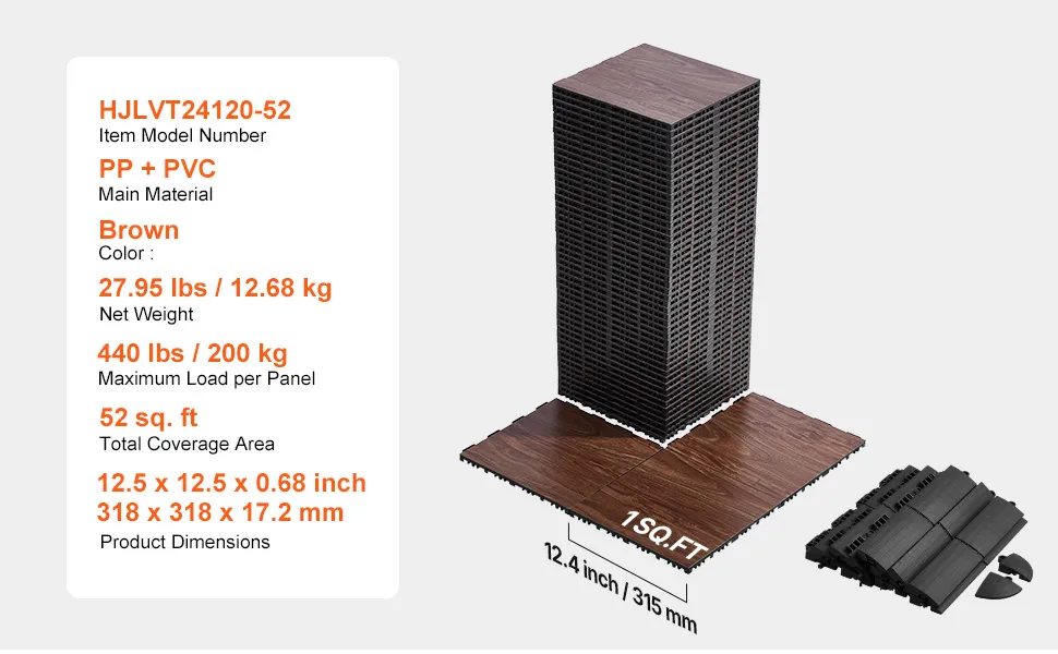 VEVOR Piastrelle per Pista da Ballo, 315 x 315 x 17,2 mm Pista da Ballo ad Incastro da 52 Pezzi, Pista per Pratica di Danza Portatile con Base Imbottita, Venature di Legno di Quercia, 4,83 m²/Scatola