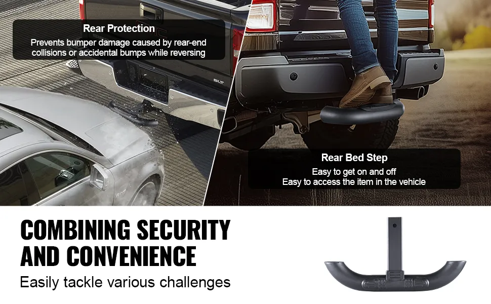 Sicurezza e praticità: questo gradino di aggancio è sia una robusta funzione di sicurezza che uno strumento pratico per il carico e lo scarico. Offre la massima protezione per la parte posteriore del veicolo, resistendo a tamponamenti, graffi e impatti.