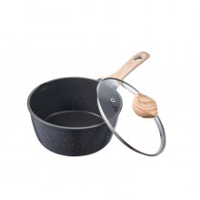 VEVOR Casseruola Antiaderente da 1,42 L con Coperchio in Vetro Temperato, Pentola per Zuppa Verdure Salsa con Manico Rimovibile, Casseruola in Lega di Alluminio, Nera