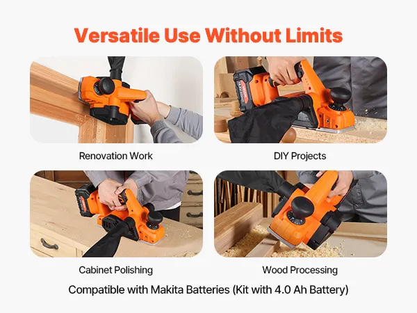 • Large-Capacity Battery: Our woodworking handheld planer comes with a high-capacity battery, so you can enjoy cordless convenience and work efficiently anytime, anywhere. Tackle demanding tasks in complex environments without power cord limits