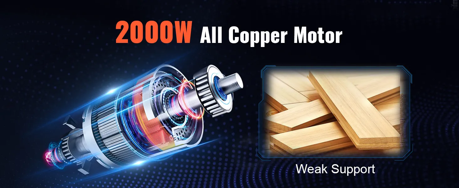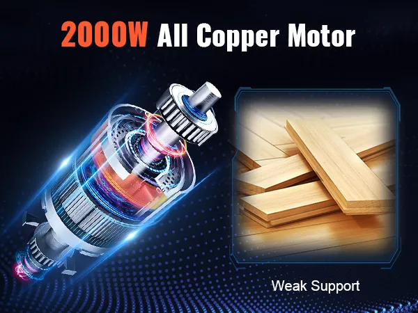 Motore Inarrestabile da 2000 W: il motore da 23500 giri/min della pialla fornisce una finitura. Il motore da 15 Amp è potente e affidabile, fornendo prestazioni elevate.
