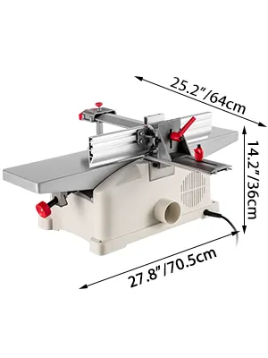 Questo attrezzo elicoidale jointer da 6 pollici riutilizza il legno vecchio, stagionato, ruvido e usurato per dargli una finitura straordinariamente liscia. Il potente motore da 1280 W è in grado di fornire una planata efficiente a un max. Larghezza di piallatura : 156 mm. La pialla da banco jet jointer presenta anche un'interfaccia di scarico della polvere per il collegamento al collettore di polveri, in grado di creare un ambiente di lavoro pulito. Una combo planer jointer è lo strumento ideale per riportare in vita le tue tavole consumate!