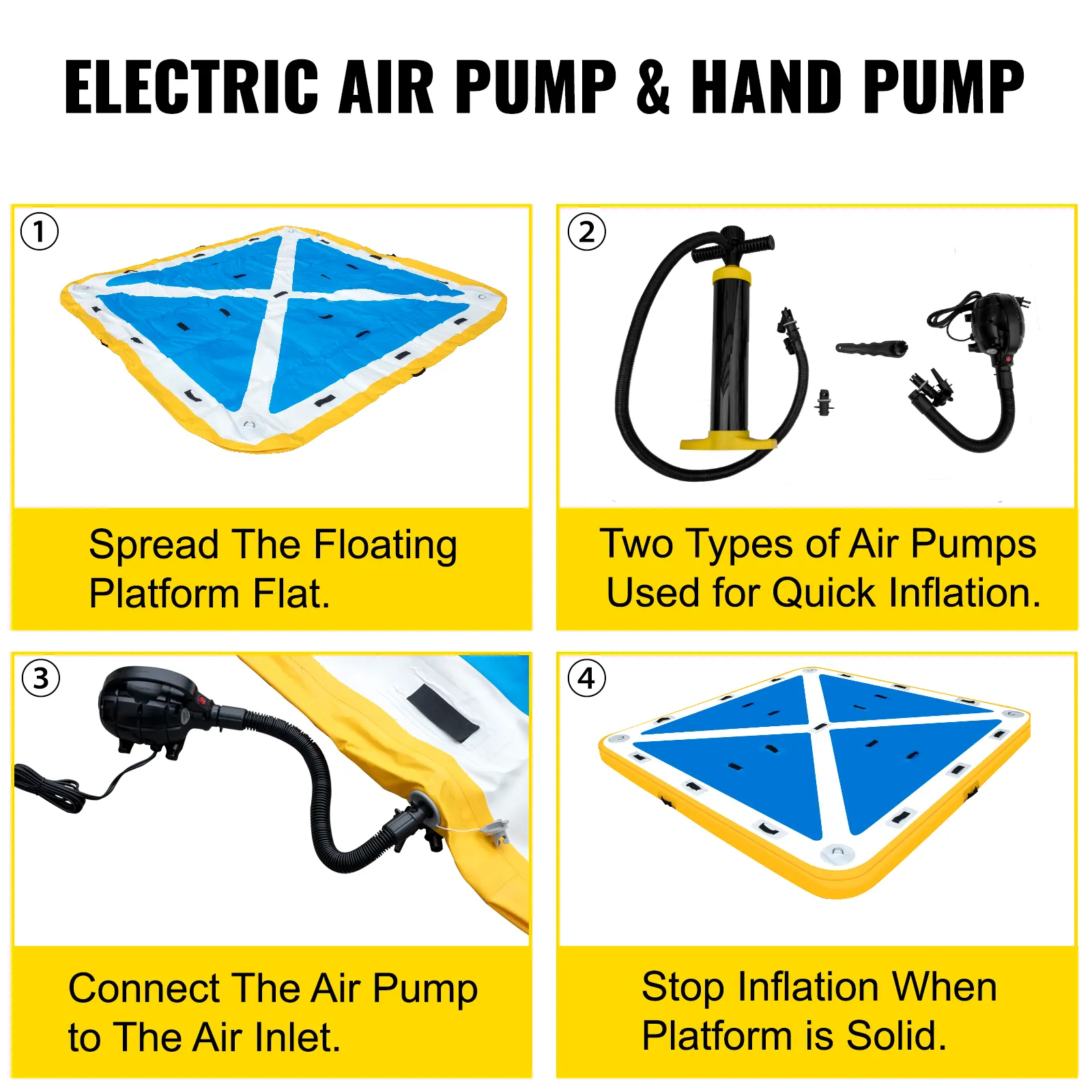 Questo molo gonfiabile è un necessario per gli appassionati di acqua di tutti i tipi. Puoi usarlo come un resort galleggiante per giocare, pescare e guardare il tramonto dall'acqua. I bambini adorano saltare e giocare su questo molo galleggiante. È costruito con materiale in PVC per rigidità e stabilità eccellenti. Pompa ad aria elettrica per gonfiaggio / sgonfiaggio rapido e istantaneo. Il molo galleggiante ti regalerà un sacco di divertimento per tutta l'estate.