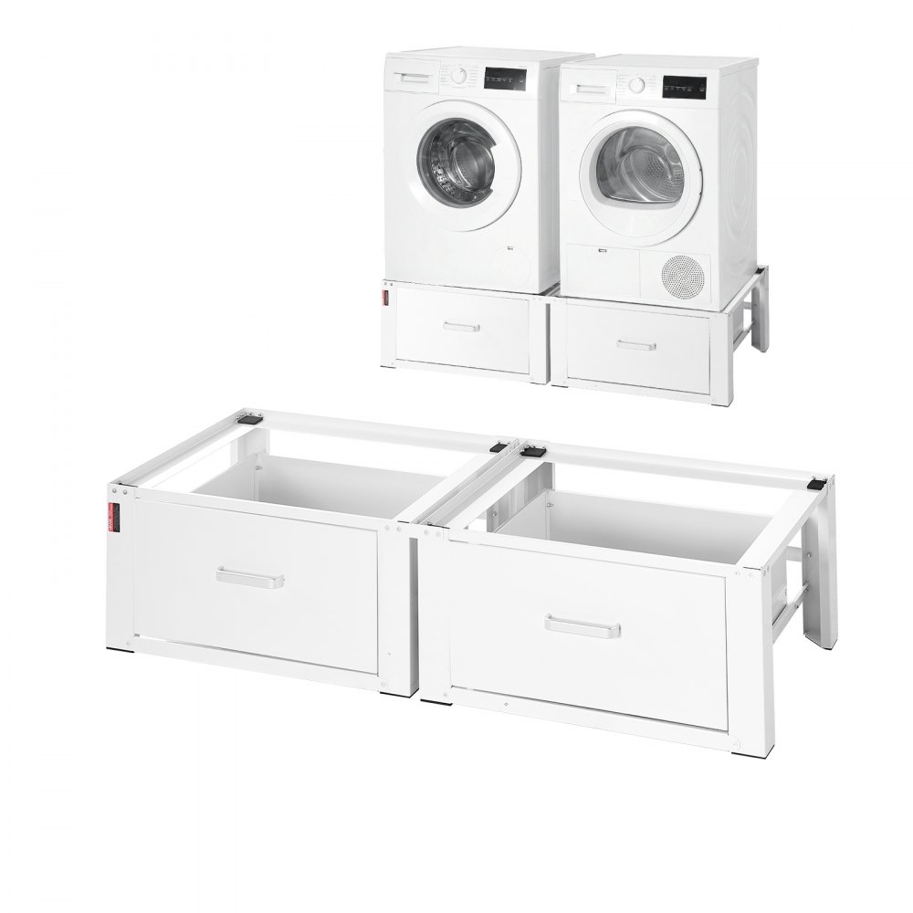 VEVOR Supporto per Lavatrice Asciugatrice Base Universale Altezza 290 mm Carico max. 150 kg Piedini Antiscivolo, Piedistallo per Lavatrice in Acciaio Set da 2 pezzi con Cassetto Portaoggetti, Bianco