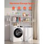 VEVOR Storage Shelving for Washing Machine and Dryer, 4-Tier Clothes Rack with Clothes Rail and Hooks, Double-Row Adjustable Washing Machine Shelves, for Storage and Organization, White