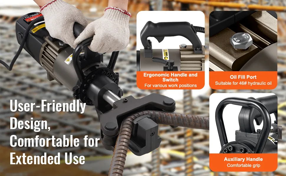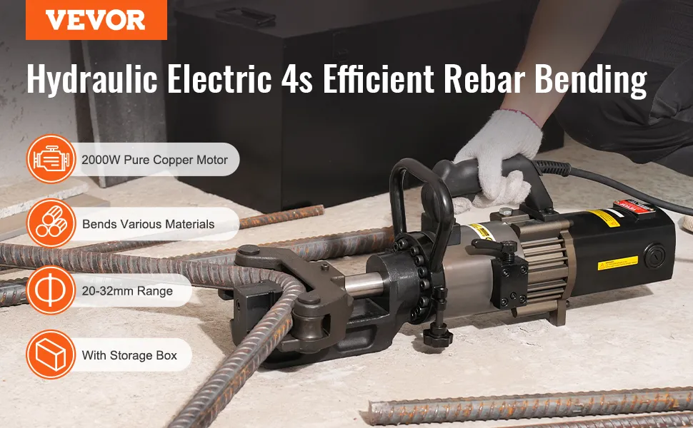 La piegatrice idraulica elettrica per tondo per cemento armato ti aiuta a completare rapidamente le tue attività grazie alla sua ampia gamma di piegatura e alla cassetta degli attrezzi inclusa. Sia nei cantieri che in altri ambienti.