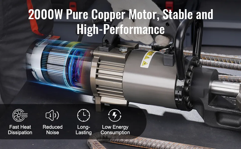 Utilizziamo motori in rame puro di alta qualità per fornire prestazioni potenti, stabili e durevoli per la piegatura delle armature. Il basso consumo energetico e il funzionamento silenzioso del motore migliorano la sicurezza sul posto di lavoro.