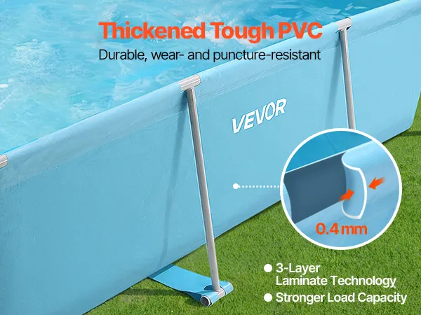 Realizzata in PVC di alta qualità a triplo strato con uno spessore di 0,4 mm, questa piscina fuori terra offre resistenza, resistenza allo strappo e protezione antigraffio superiori. La sua eccellente resistenza agli agenti atmosferici la rende durevole.