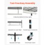 I ripiani regolabili si adattano a piante di varie altezze. Le cinghie a strappo mantengono le piante al sicuro, i vassoi in PP a prova di perdite proteggono i circuiti e le rotelle girevoli in gomma facilitano il riposizionamento.
