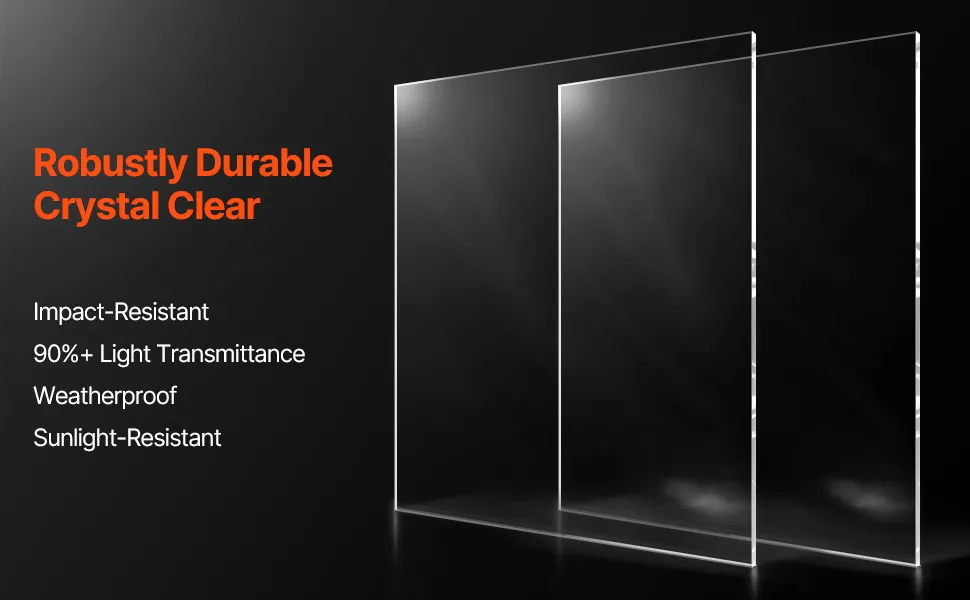 Antivento, antipioggia, resistente alla luce solare: ideale per l'uso all'aperto con eccellente resistenza alle intemperie, al vento, alla pioggia e alla luce solare. Sostituisci i fragili vetri delle finestre con i nostri fogli acrilici resistenti per migliorare la sicurezza e la durata
