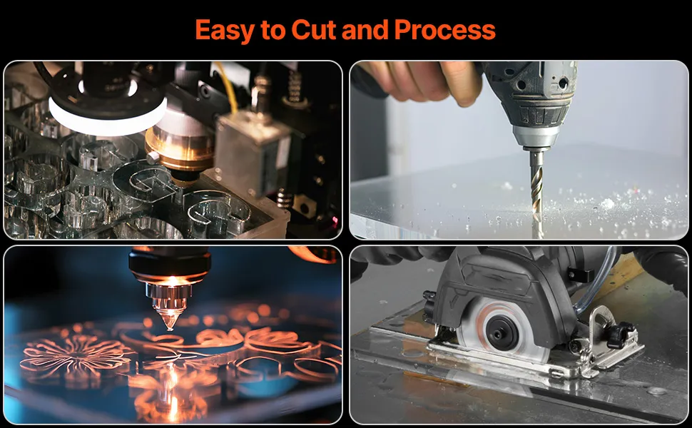 Lavorazione impeccabile: i nostri pannelli in acrilico supportano una lavorazione flessibile con una varietà di utensili manuali ed elettrici per ottenere le dimensioni e le forme desiderate senza sforzo. Pratica facilmente dei fori sulla superficie utilizzando un trapano