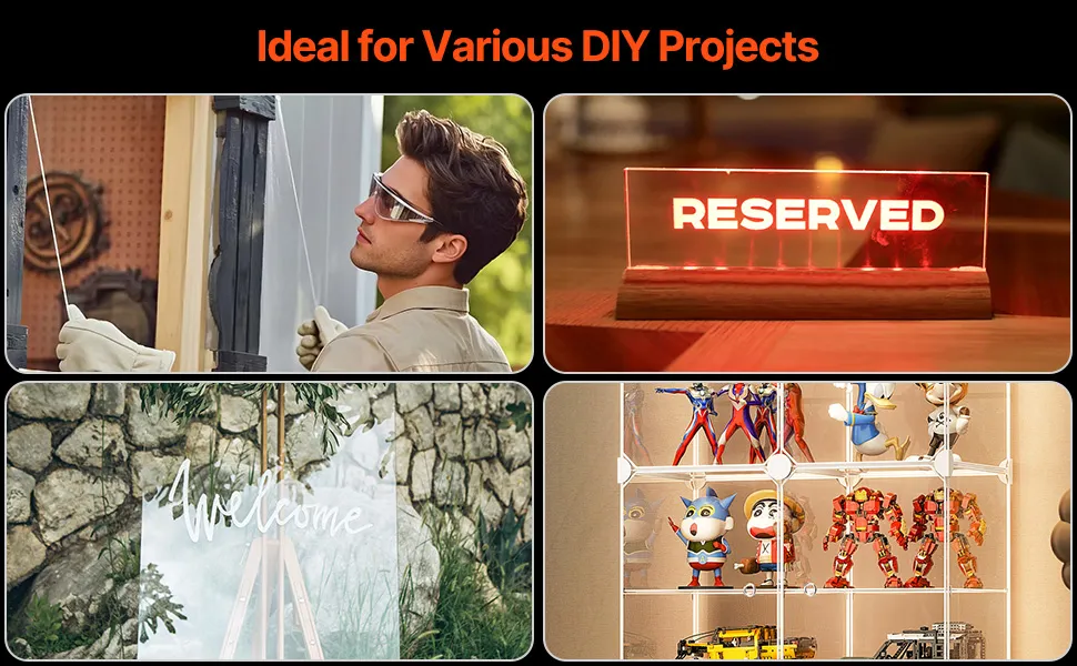 Scatena la tua creatività fai da te senza limiti. Usa questi fogli di plastica flessibili per creare cartelli espositivi per matrimoni, creazioni fai da te, espositori trasparenti per modelli e persino sostituire vetri rotti per una soluzione più sicura e senza preoccupazioni.