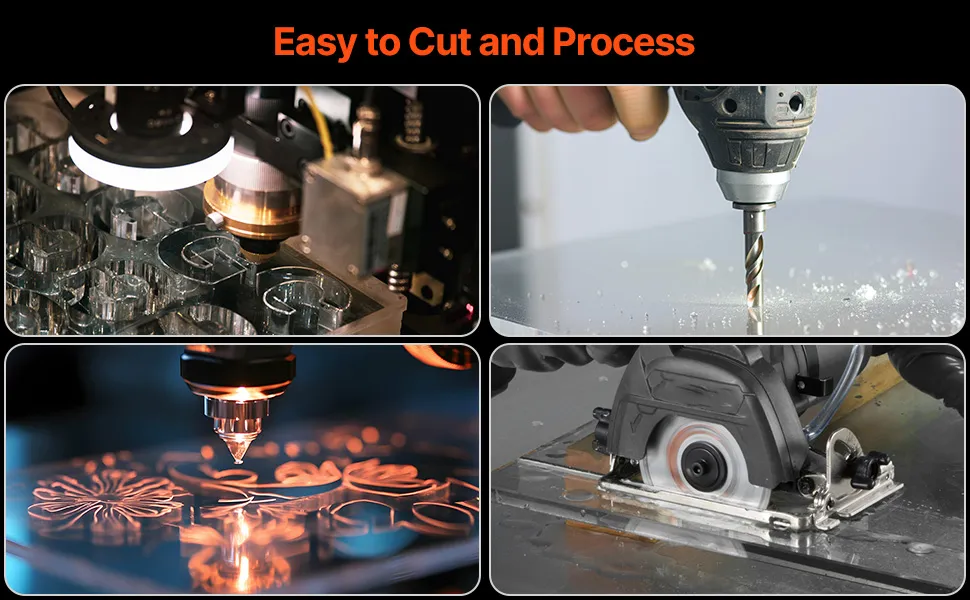 Lavorazione impeccabile: i nostri pannelli in acrilico supportano una lavorazione flessibile con una varietà di utensili manuali ed elettrici per ottenere le dimensioni e le forme desiderate senza sforzo. Pratica facilmente dei fori sulla superficie utilizzando un trapano