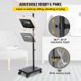 Leggio VEVOR, altezza regolabile con dimensioni, base in metallo e ruote.