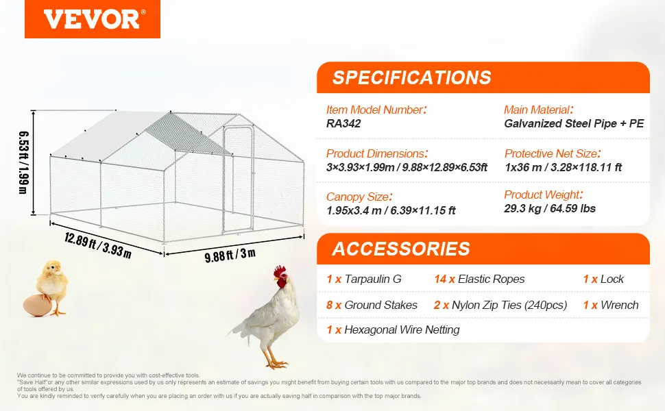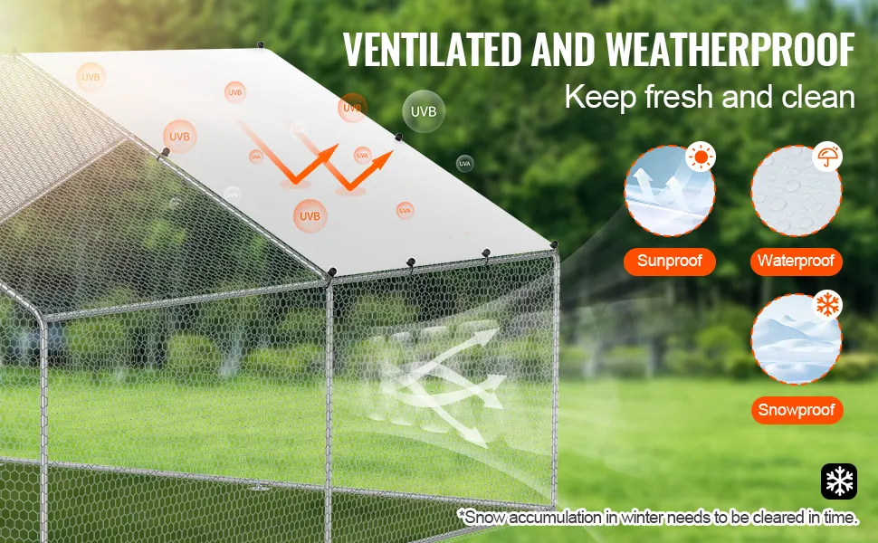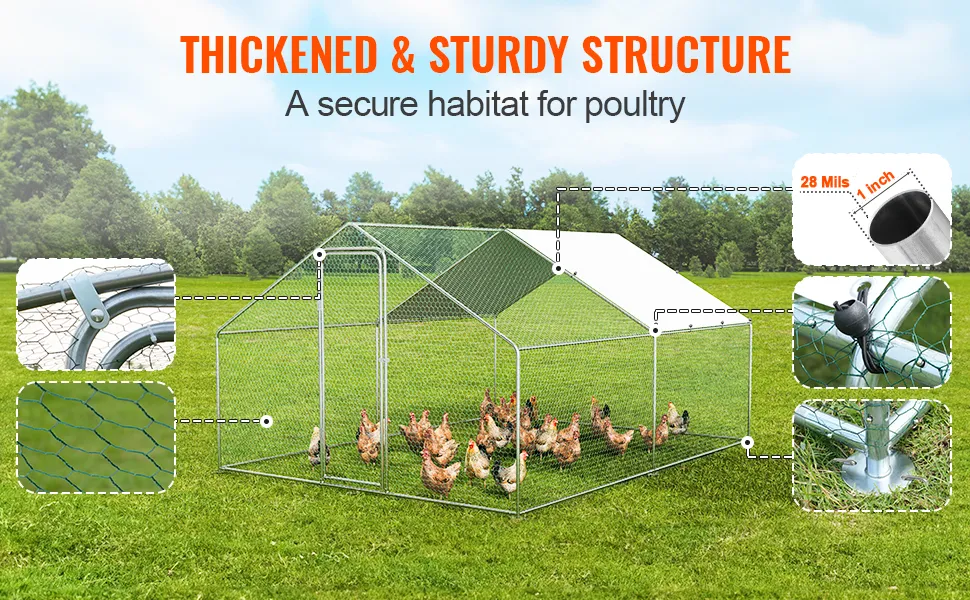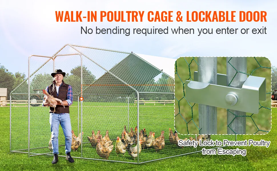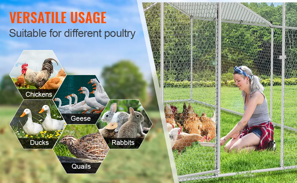 Il pollaio in metallo di grandi dimensioni VEVOR è ideale sia per l'uso all'aperto che in giardino. Offre un ambiente sicuro per il tuo pollame. Realizzato in tubi di acciaio zincato e PE, dura a lungo. Il design garantisce che i tuoi polli siano al sicuro dai predatori. Inoltre, la sua spaziosità consente di ospitare più specie di polli. Questo gallo è perfetto per coloro che hanno bisogno di una soluzione esterna affidabile e sicura. Il materiale resistente e il sistema di chiusura sicuro lo rendono una scelta eccellente per qualsiasi configurazione in giardino. Ottieni un'opportunità per l'ambiente in cui il tuo gregge può vagare e prosperare.