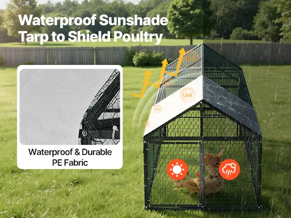 Protezione per tutte le stagioni: questa gabbia per polli è dotata di un tetto in PE di facile installazione che offre ombra nelle giornate di sole. Il design a guglia consente alla pioggia e alla neve di scivolare via naturalmente